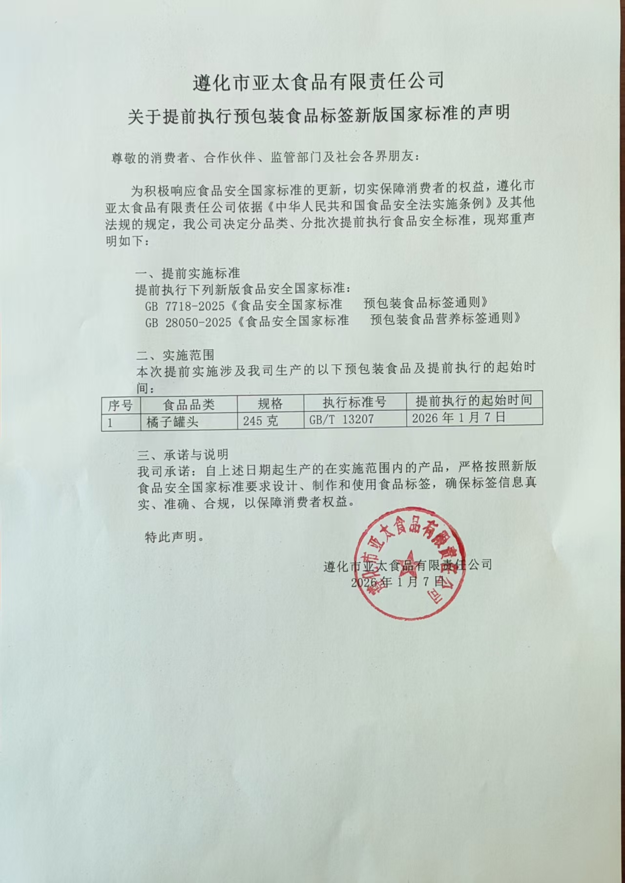 关于提前执行预包装食品标签新版国家标准的声明2