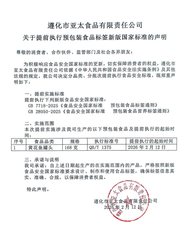 关于提前执行预包装食品标签新版国家标准的声明4